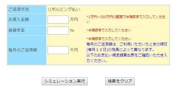 支払い方法でリボ払いを選択した場合、月々の支払額はどうなるのか、先にエミュレーションで支払額を割り出しておきましょう。